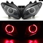 【並行輸入品】ヤマハ YZF-R6 2008-2012 オートバイ フロントプロジェクター ヘッドライト アセンブリ ホワイトエンジェルアイ レッドデビルアイ 2 HID