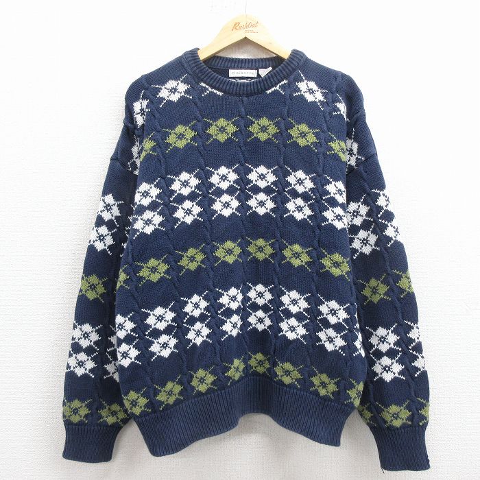 古着 長袖 ケーブル セーター メンズ 90年代 90s コットン クルーネック USA製 濃紺 spe 25dec03