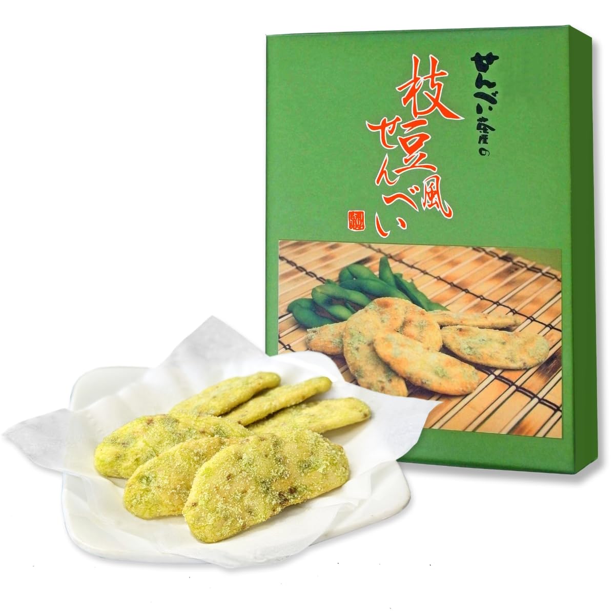 枝豆 風 煎餅 ギフト 包装 甘い スイーツ きな粉 せんべい 1箱 9袋 国産 うるち米 大豆 使用 長期保存 アルミ パック 梱包 せんべいラボ