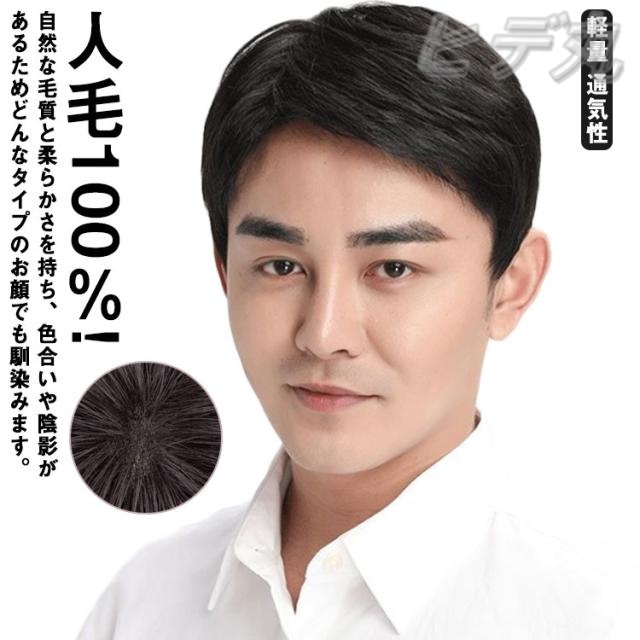 ヘアピース耐熱 プレミアム白髪隠しウィッグ (広範囲ナチュラルショートタイプ) ウイッグ ST-009 薄毛隠し カバーピース 部分手植え シルクスキン 送料無料