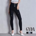 ハイウエストバッククロスダメージスキニーデニムパンツ GYDA ジェイダ 072612427001 gyda レディース ダメージデニム XS S M アイスブルー ブラック インディゴ