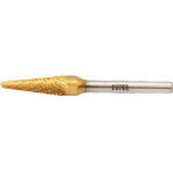 スーパー超硬バー チタンコーティング ロー付タイプ テーパー型(ダブルカット)刃径:9.5mm 軸径:6.0mm