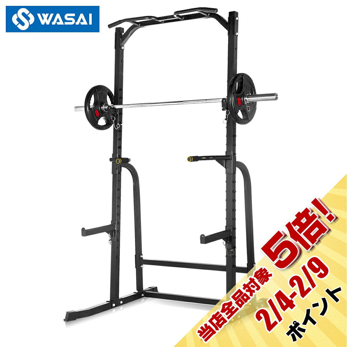 ハーフラック パワーラック セフティーバー搭載 バーベルトレーニング バーベルスタンド ベンチプレスラック ぶら下がり健康器 懸垂マシン WASAI(ワサイ) MK780