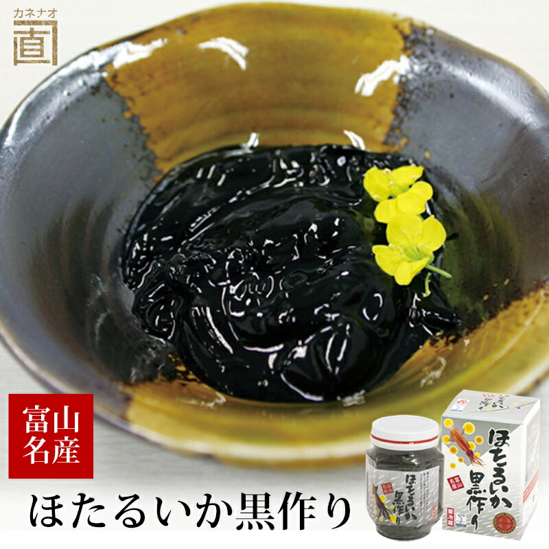 捕れたて新鮮な蛍烏賊にイカ墨の旨味とコクを加えた真っ黒な塩辛は 、黒作りと呼ばれる富山の名産品です。 ホタルイカの名産地、富山県滑川沖の海洋深層水を使いまろやかに仕上げました。 白いご飯にのせてそのま...