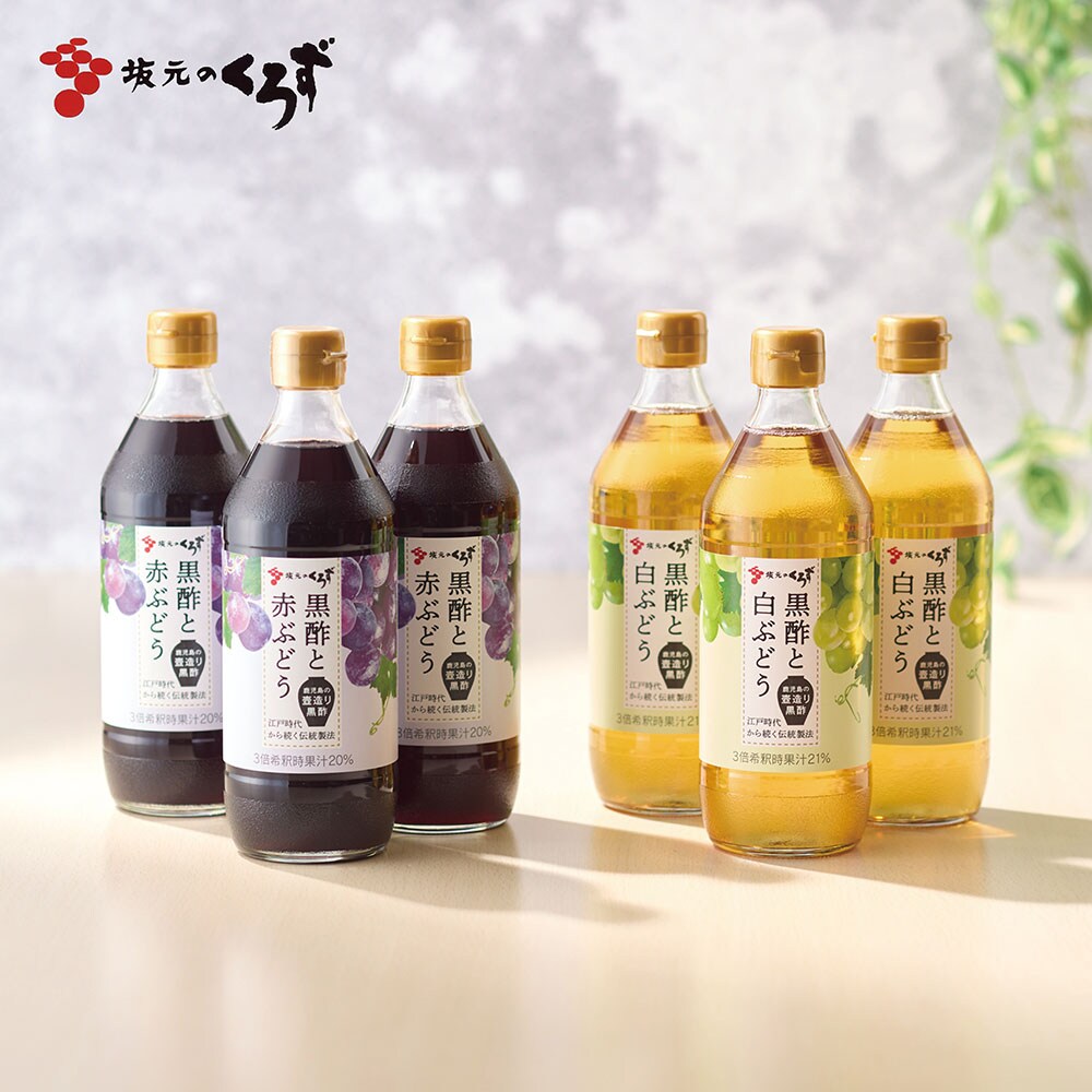 1年以上発酵・熟成させた鹿児島の壺造り黒酢「坂元のくろず」に、コンコード果汁とマスカット果汁をそれぞれあわせた飲みやすい黒酢飲料です。水や牛乳、炭酸水などで3倍程度に希釈頂くだけで簡単においしく召し上...
