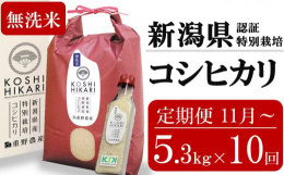 【ふるさと納税】新米先行予約【10ヶ月定期便・11月〜発送】コシヒカリ 無洗米 5kg(ペットボトル米 300g 1本付き)×10回 (計 53kg)重