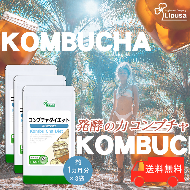コンブチャダイエット 約1か月分×3袋 T-649-3 (120粒×3袋) 送料無料 ダイエット kombucha 紅茶キノコ サプリ リプサ Lipusa 公式 agesu