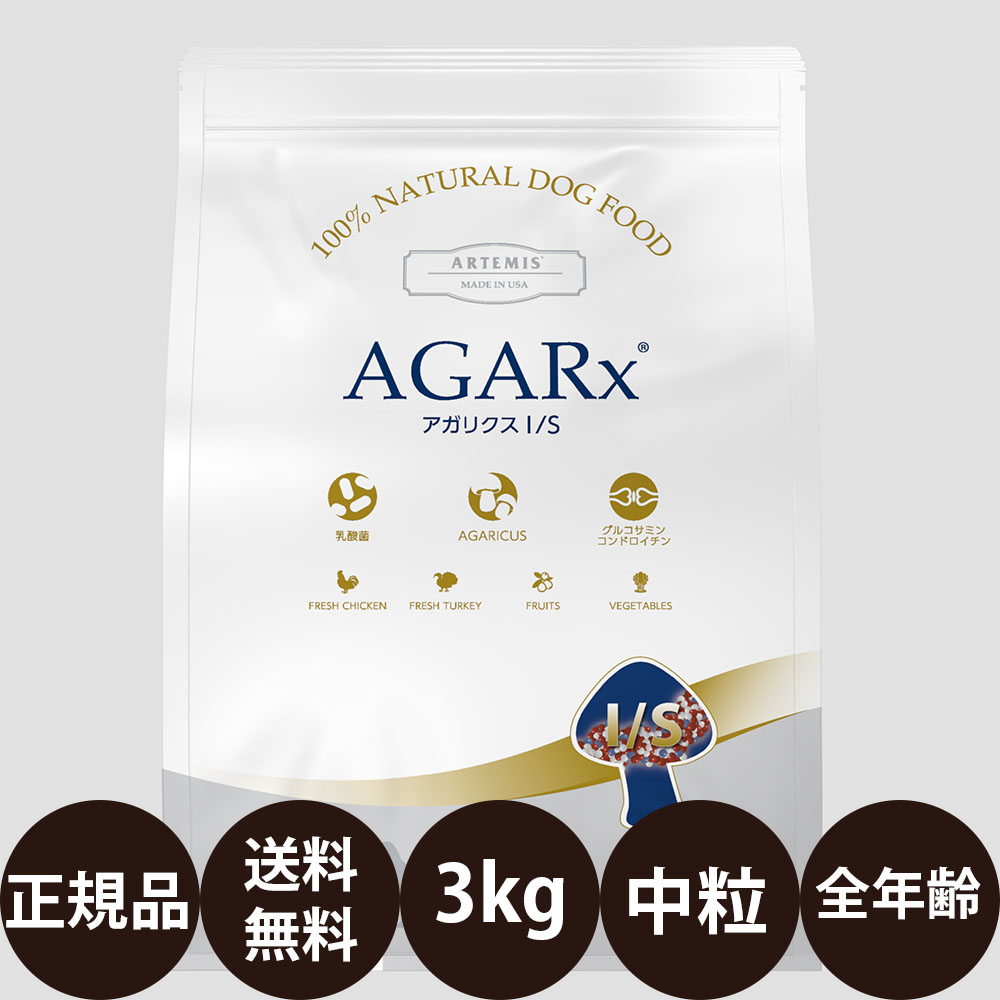 アーテミス 犬 アガリクスI/S 小粒3kg ドッグフード 無添加 アレルギー ドライフード 乳酸菌 安全 食物 皮膚 痒み 送料無 他お試しフードサンプル有 8133690054908 AS60