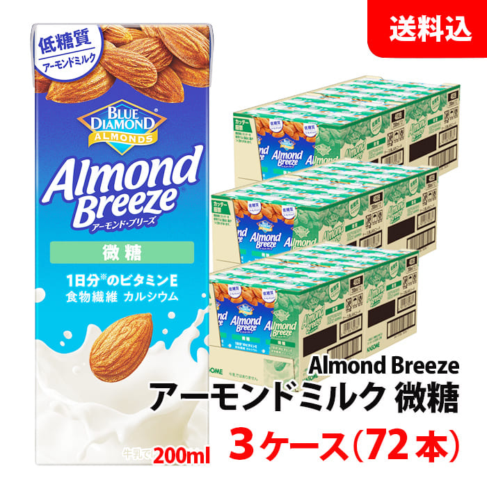 送料無料 カゴメ アーモンドブリーズ 微糖 200ml 3ケース(72本) ブルーダイヤモンド アーモンドミルク Almond Breeze カルシウム ビタミ