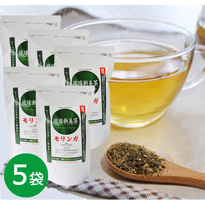 沖縄産100% モリンガ「琉球新美茶」30包×5袋 スーパーフード お茶 ティーバッグ 食物繊維 水溶性 不溶性 アミノ酸 ミネラル ビタミン