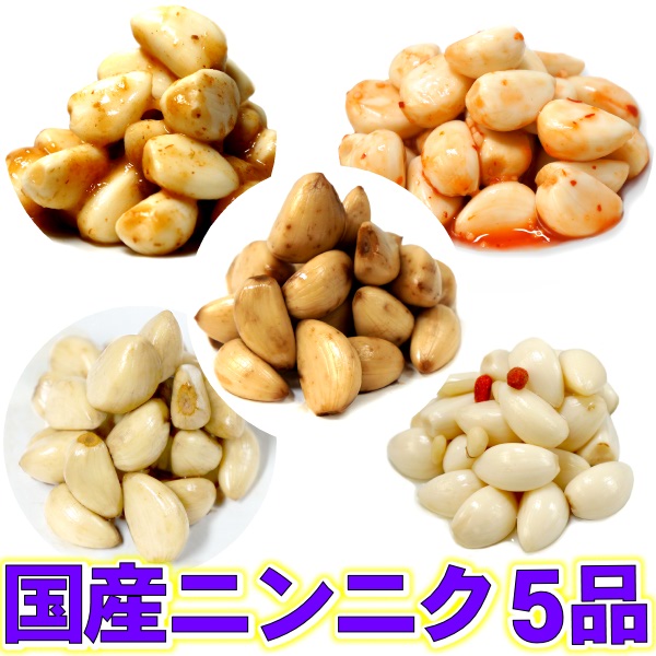国産 にんにく 漬物 5品セット ( 梅肉・キムチ・薬膳・たまり・黒酢 ) 各100g 送料無料(条件付き)