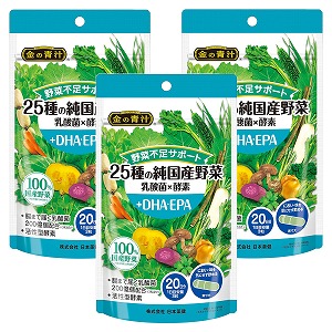 金の青汁 25種の純国産野菜 乳酸菌×酵素++DHA・EPA 60粒×3個セット メール便送料無料