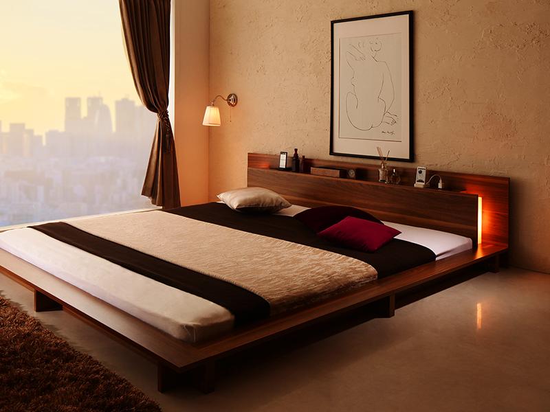 〔組立設置料込み〕モダンライト・コンセント付き大型ローベッド 〔スタンダードボンネルコイルマットレス付き〕 セミダブル 〔フレーム