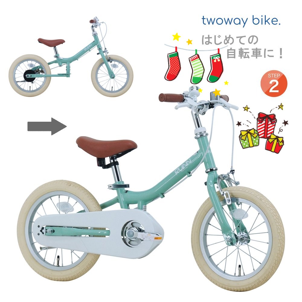 サカイサイクル 子供用自転車 14インチ Twoway Bike RUNN G ツーウェイバイク TW14 くすみグリーン はじめての自転車 ランニングバイク