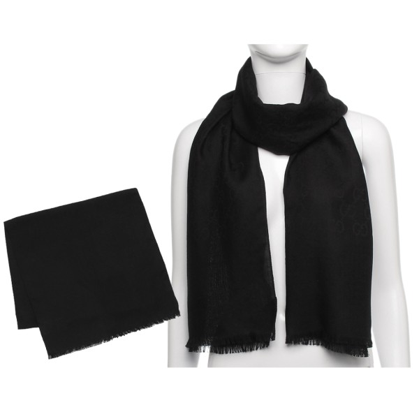 グッチ ストール スカーフ ジャガード GGロゴ シルク混ウール 大判 ブラック メンズ レディース ユニセックス GUCCI 165904 3G646 1000