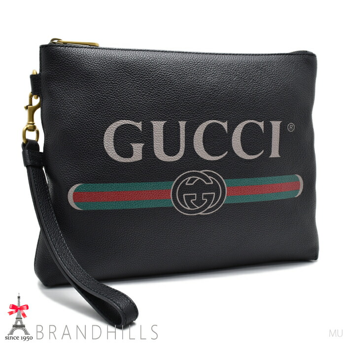 グッチ クラッチバッグ カーフスキン ブラック ロゴプリント ストラップ付 セカンドバッグ 572770 GUCCI 美品 【中古】