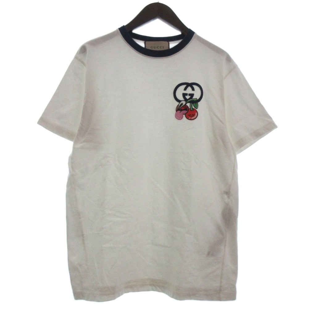 【中古】グッチ GUCCI Cotton Jersey T-Shirt With Patch リンガーTシャツ カットソー 半袖 785345XJGIK 白 XS