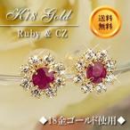 ピアス レディース 大人 フープピアス 中折れ 10金 10k 7月誕生石 ルビー 金属アレルギー対応