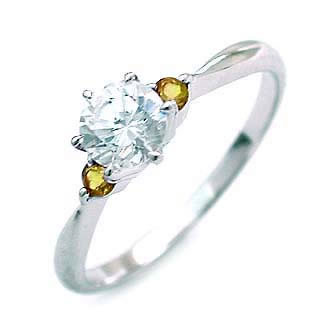 11月誕生石 シトリン Pt ダイヤモンドリング 婚約指輪・エンゲージリング
