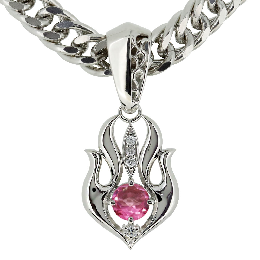 10月誕生石ピンクトルマリンを使用したシルバー製の、メンズネックレス(ペンダント)です。 ※【カラー3色の中から】お選び頂けます。 ■本体素材:シルバー925(ホワイトコーティング/イエローコーティン...