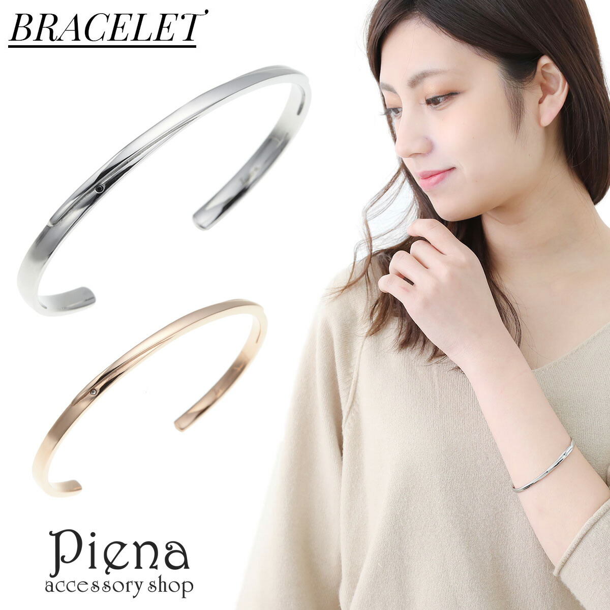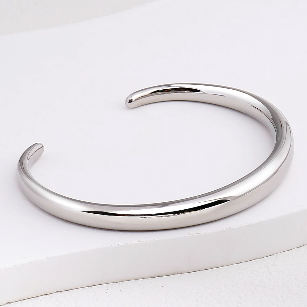 一粒のダイヤモンドがキラリと輝くシンプルなラインが美しいバングル お肌に優しいステンレス製
