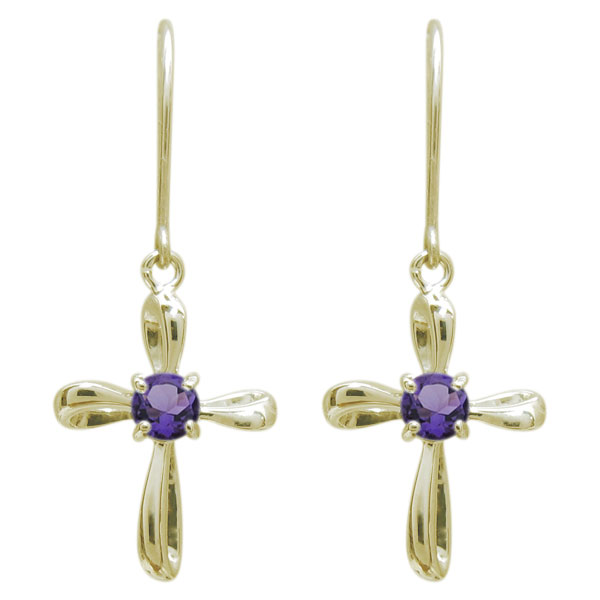 十字架 ピアス クロスモチーフピアス 10金 アメジスト フックピアス