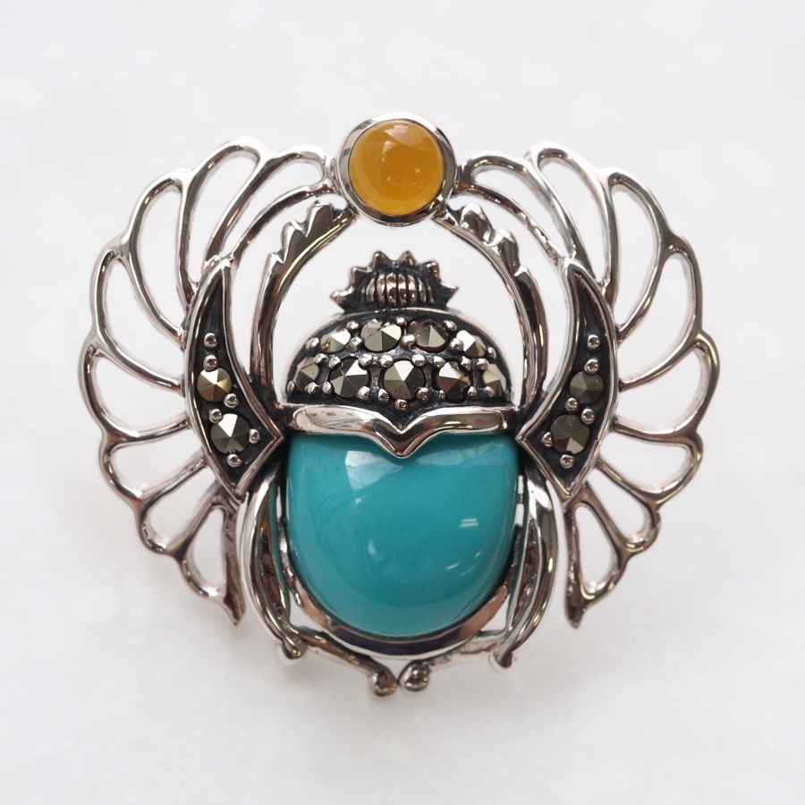 シルバー アール リボン マルカジット ペンダント トップ ブローチRokuzan ロクザン SV925 シルバージュエリー アンティーク調 ラッキーアイテム トラベルジュエリー_262sv_s