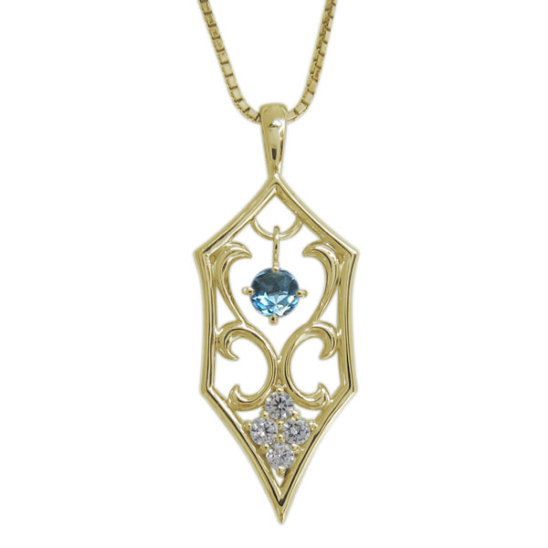 18金 唐草 ブルートパーズ メンズネックレス ペンダント