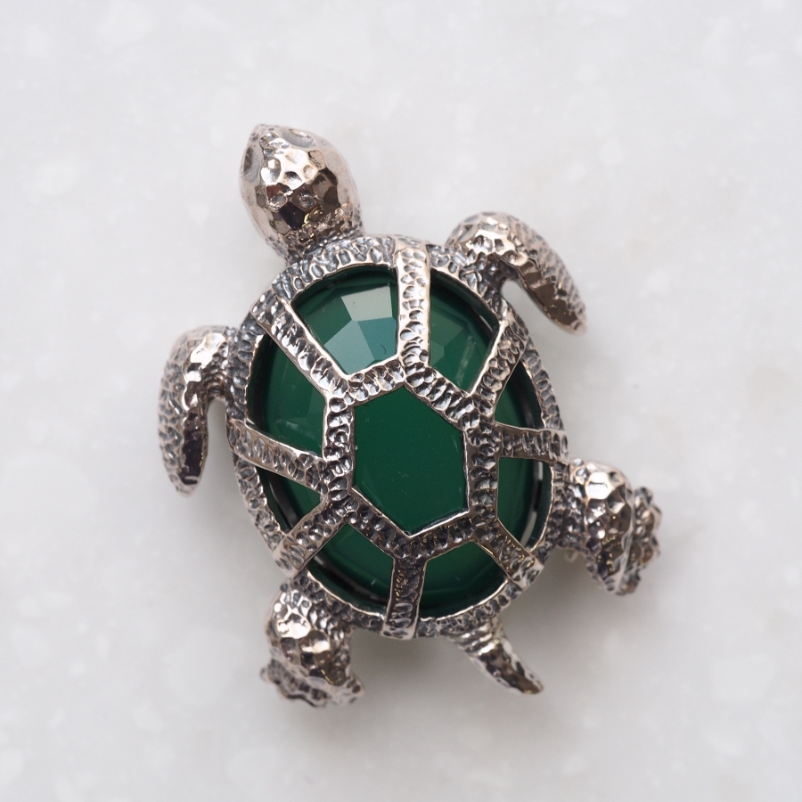 ROKUZAN グリーンアゲート カメ ブローチ ペンダントトップ (チェーンなし) ネックレス ペンダント トップ ヘッド シルバー925 碌山ジュ