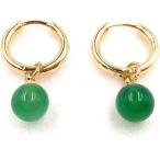 商品名ALLISON ROSE ATELIER フープチャームイヤリング オニキスドロップストーン付き 天然グリーンオニキスハンドメイドストーン 7mm 16Kゴールドメッキエンドレスクリ...