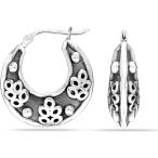 商品名LeCalla Sterling Silver Jewelry Antique Filigree Click-Top Polished Hoop Earrings for Women Teenブ...