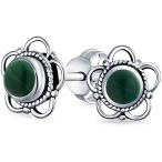 【並行輸入品】バリスタイル小さなラウンドオープンフラワーフォレストグリーンマラカイトストーンスタッドピアス女性のための酸化.925スターリングシルバー