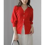 カーディガン 「追加」「25AW新作」コットンカシミヤミックスダブルニットVネックカーディガン レディース