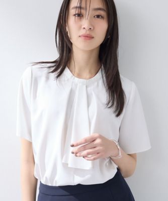 INDIVI 胸元タックフリルブラウス インディヴィ トップス シャツ・ブラウス ホワイト グレー ブラック ブルー