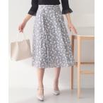スカート 麻調花柄ジャカードフレアスカート「洗える」