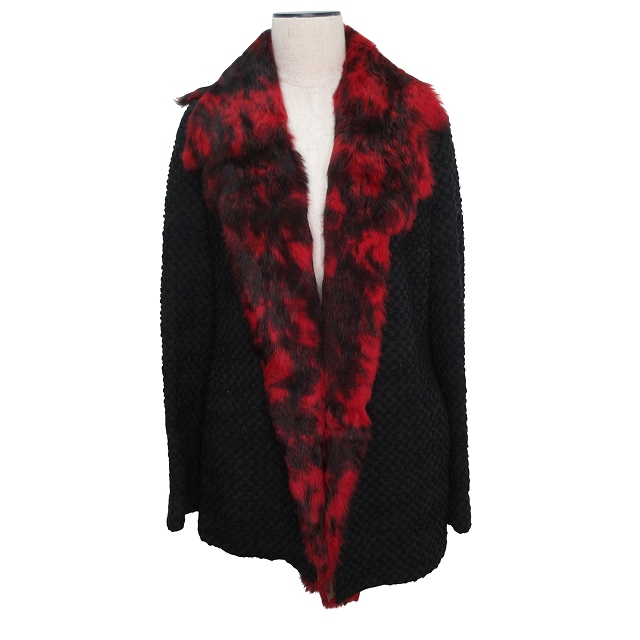 【中古】ウンガロ UNGARO 長袖 コート ジャケット アウター コットン レザー 40 Lサイズ相当 ブラック レッド k271710
