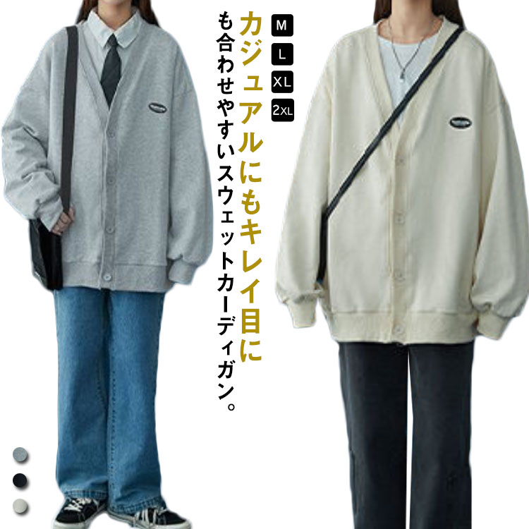 3色展開 パーカー レディース カーディガン 春秋 スウェット トップス トレーナー 長袖 薄手 アウター 大きいサイズ ゆったり 体型カバー