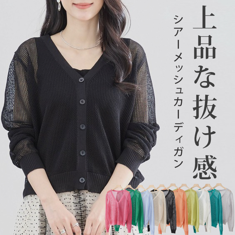[関連ワード]カーディガン レディース 薄手 ゆったり サマー メッシュ ニット 春夏 透かし編み ニット カーディガン 透け感 カーデ シンプル オフィス ドライタッチ 冷房対策 サマーニット シア...