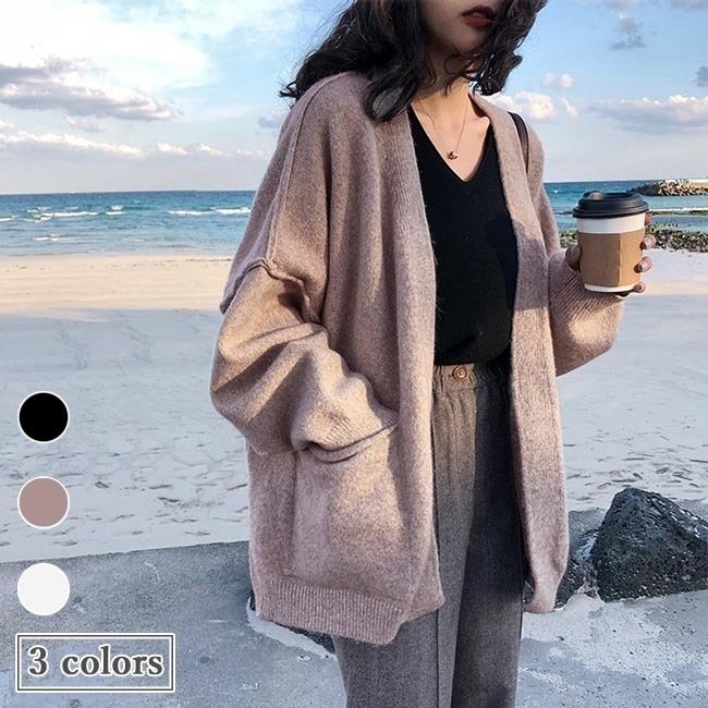 ニットカーディガン レディース カーディガン ボタン無し コーディガン ノーカラー 春 ニットコーディガン ポケット付き ライトアウター