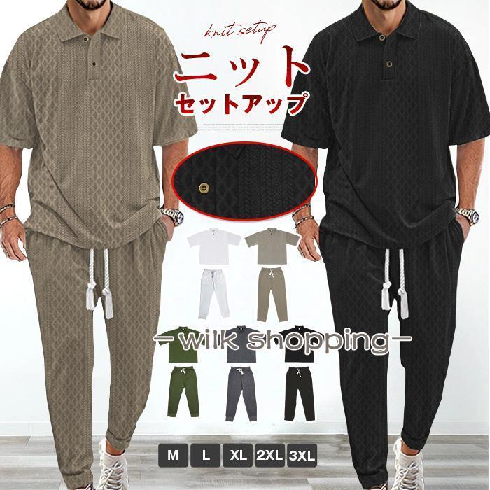 セットアップ メンズ ニット 上下セット カットソー ジャージ ジャカード