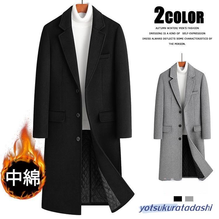 超ロングコート メンズ チェスターコート 中綿 防寒着 あったか ビジネス コート アウター ひざ下 冬物 ブラック グレー...