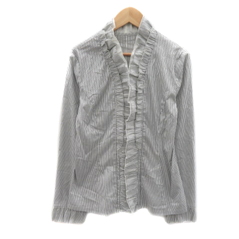 【中古】エンスウィート レナウン シャツ ブラウス 長袖 スタンドカラー ストライプ柄 2 黒 ブラック レディース