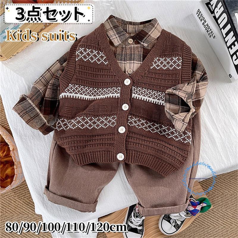 子供 スーツ 男の子 子供服 フォーマル 秋冬 キッズ スーツ 3点セット シャツ ベスト ニット 上下セット 洋服 韓国風 長袖 子ども服 春秋