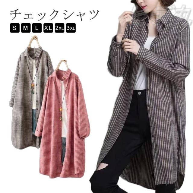 チュニック レディース ロングシャツ ワンピース シャツ ロング丈 プルオーバー 綿麻 リネン シャツワンピース 薄手 シンプル 大人...