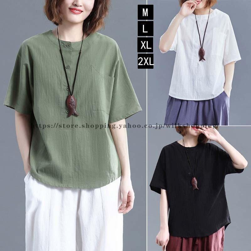 レディース トップス シャツ 春 夏 秋 バンドカラー フォーマル チュニック 七分袖 無地 通勤 OL 着痩せ オシャレ