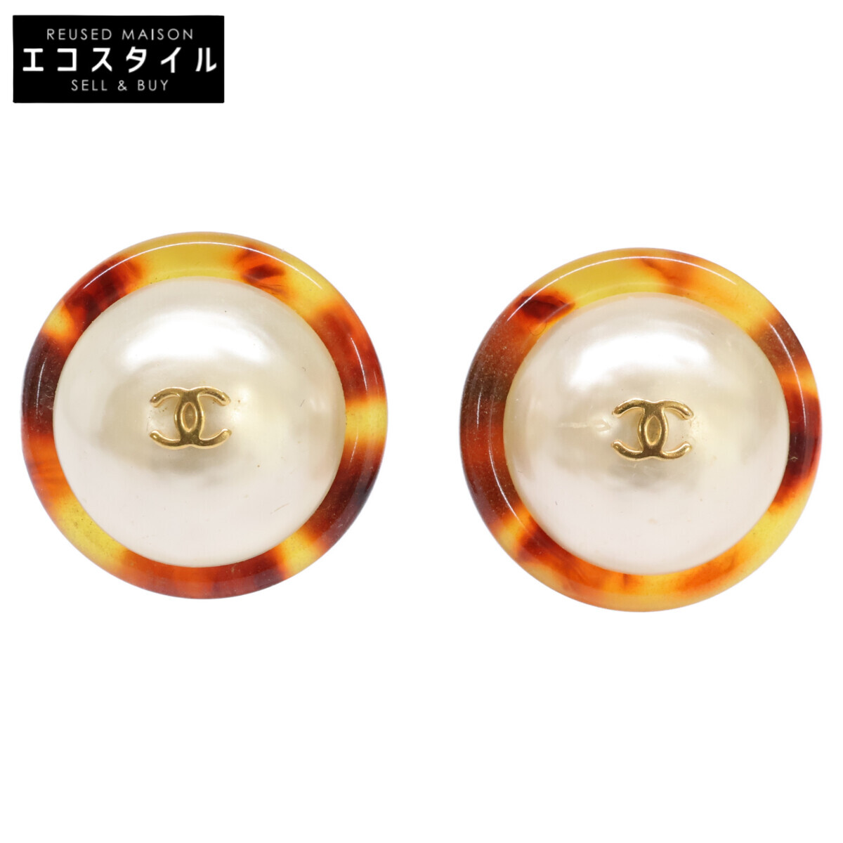 美品△CHANEL シャネル ヴィンテージ 95P ココマーク フェイクパール ラウンド イヤリング アクセサリー 両耳用 ゴールド フランス製