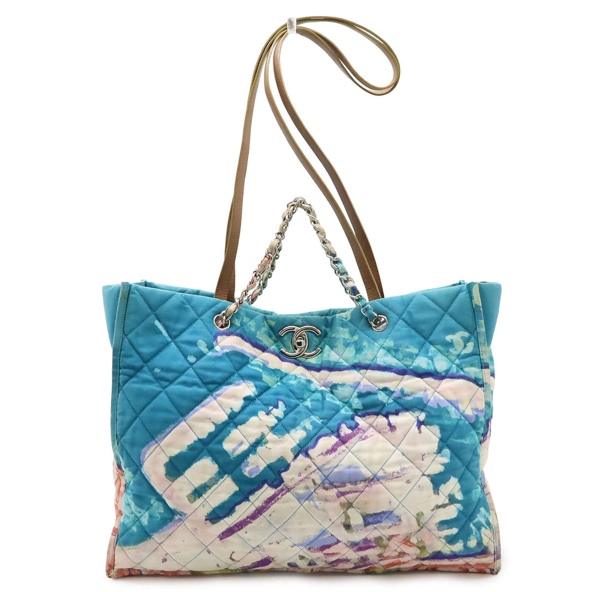 CHANEL シャネル ココマーク マトラッセ グラフィティ ウォーターカラー トートバッグ 2WAY ハンドバッグ チェーンハンドル ブルー 青 ナ