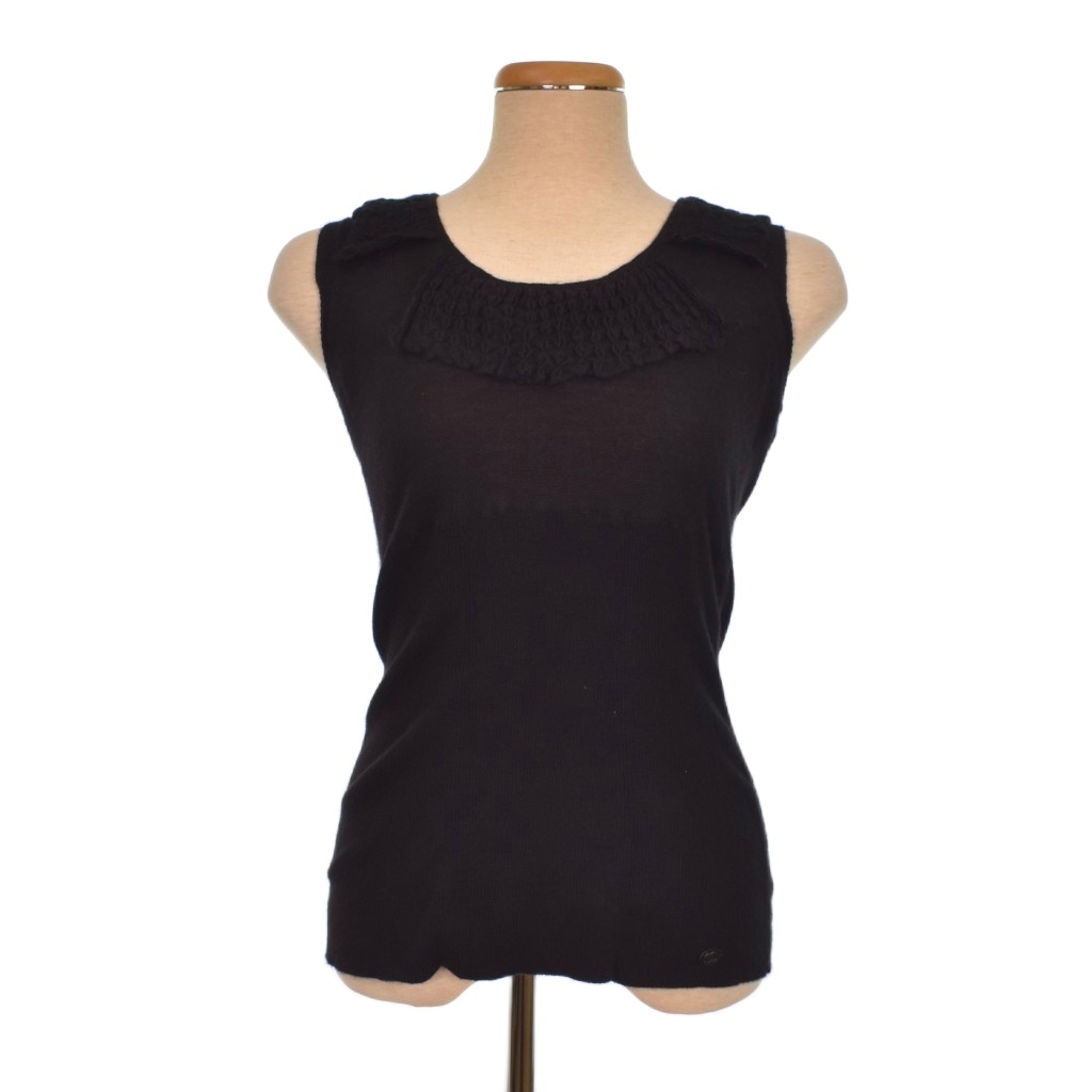 【中古】シャネル CHANEL ニット カットソー ノースリーブ ココマークプレート カシミヤ シルク 黒 ブラック
