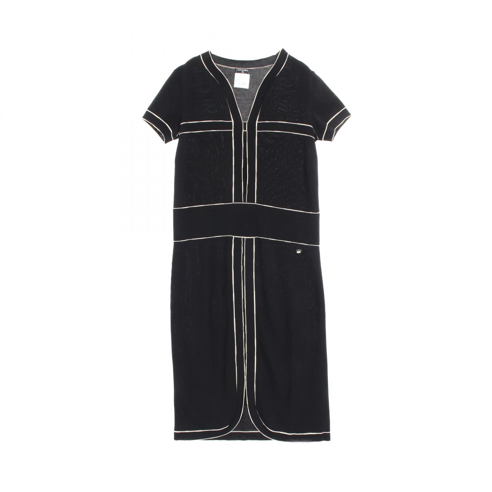 美品☆CHANEL シャネル ヴィンテージ 23572 ウール ココマークボタン ベルト付 長袖 タイトワンピース ブラック 34 フランス製 レディー