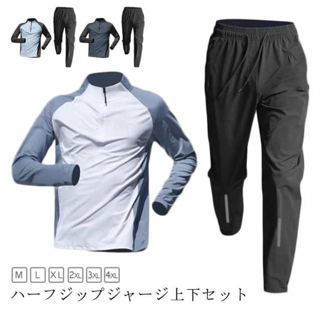 ジャージ セットアップ 上下 ジャージ 長袖 ハーフジップ ロングパンツ 薄手 立ち襟 吸汗 速乾 ドライ スポーツウェア...